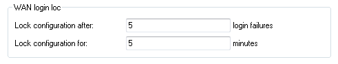 Additional security for the registration is provided by a count of the number of times that a SIP user authenticates incorrectly. Once the counter reaches a threshold value, the device locks the SIP user's account for a certain time. During this period the SIP user cannot log on to the Voice Call Manager. You set the threshold value and the locking time under in the section WAN login lock.