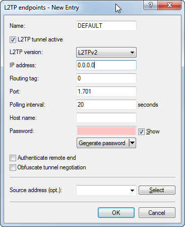 1. Under Communication > Remote sites > L2TP in the table L2TP endpoints, create an entry "DEFAULT".