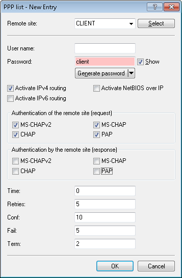 4. You then configure a new entry for the client under Communication > Protocols in the PPP list.