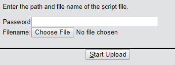 If the script file is encrypted, enter the appropriate password and click on Start upload.