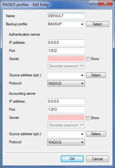 - From the list of RADIUS server profiles, select a profile as the backup server.