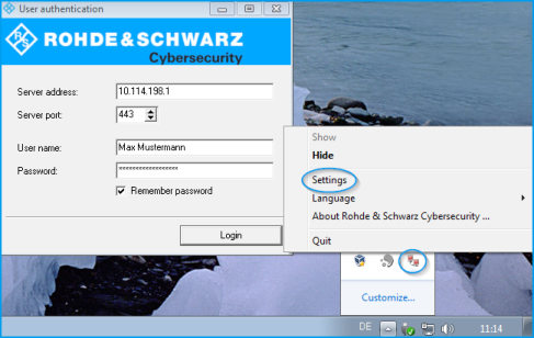 Start the LANCOM R&S®Unified Firewall User Authentication Client.