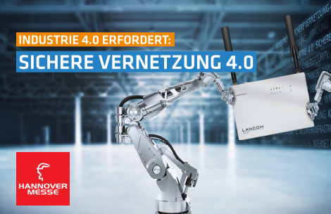 Unter dem Leitspruch „Industrie 4.0 erfordert: Sichere Vernetzung 4.0“ zeigt LANCOM, wie hochmoderne Netzwerkkonzepte wie Software-defined Networking (SDN) das Fundament für die effiziente Digitalisierung der industriellen Fertigung legen.