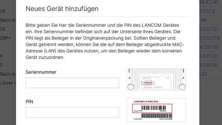 Neue Geräte über Seriennummer und Cloud-PIN hinzufügen