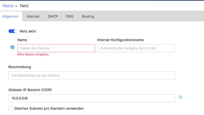 - Mit dem nächsten Klick wird dieses Netz für die Verteilung auf verschiedene Standorte via VPN aktiviert.