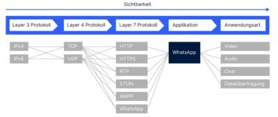 Durch die Kombination dieser Verfahren werden tausende von Netzwerkprotokollen und Anwendungen, einschließlich Anwendungsmerkmalen und Diensttypen, zuverlässig und automatisiert in Echtzeit identifiziert und klassifiziert, selbst bei verschlüsseltem oder verschleiertem IP-Datenverkehr auf Anwendungsebene Layer 7 und darüber hinaus.