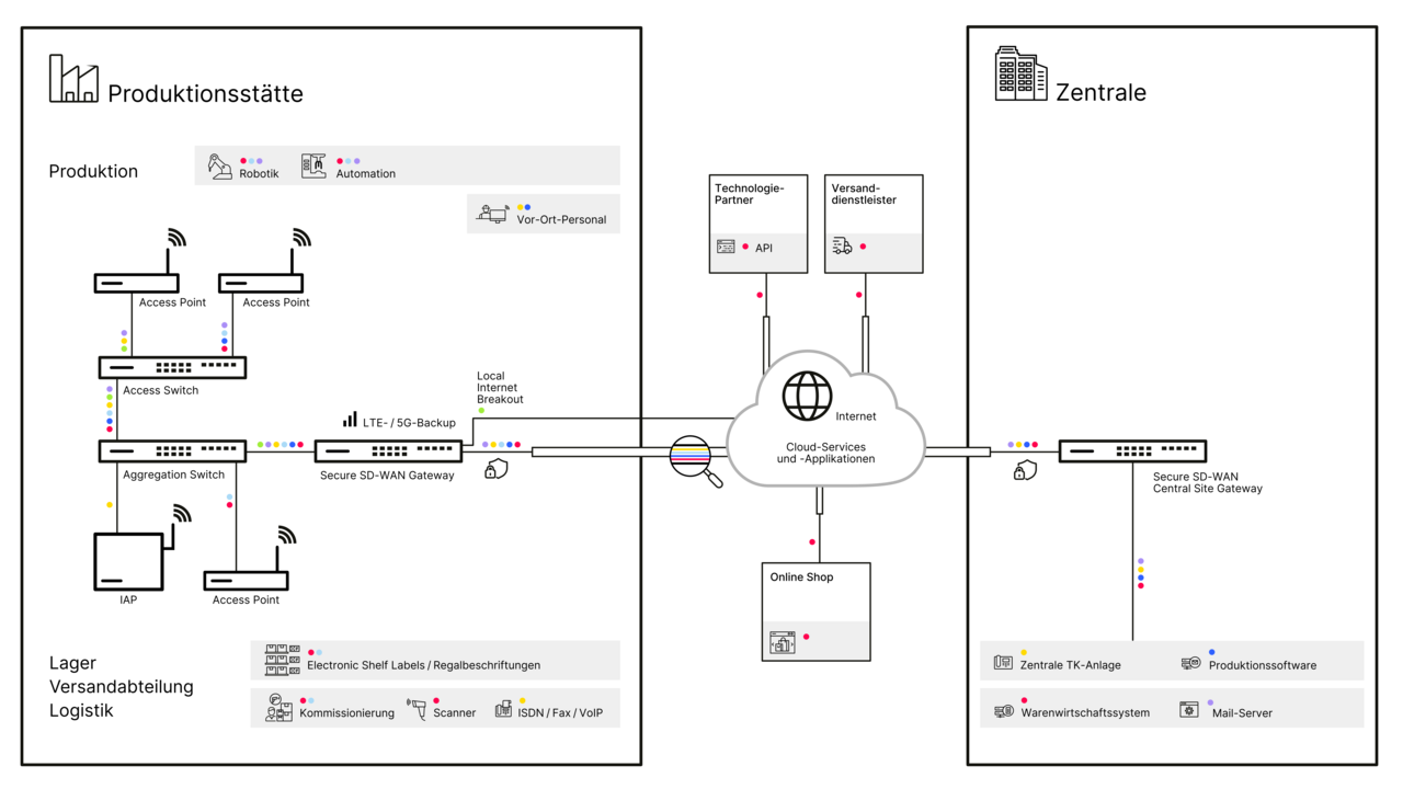 Beispiel einer Netzwerk-Infrastruktur mit Fokus auf IIoT