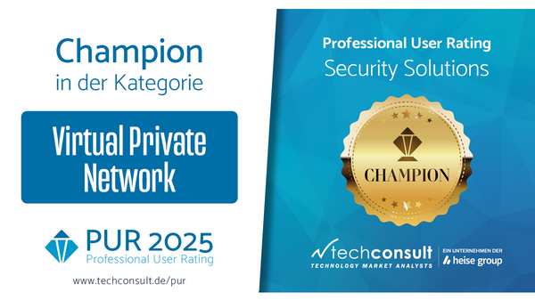 Die LANCOM VPN-Lösungen werden schon seit vielen Jahren von Nutzern angewendet und harten Praxistests unterzogen. Dabei konnten sie ihren stetig hohen Qualitätsanspruch stets halten: Im „Professional User Rating Security Solutions (PUR-S)“ 2024 des Analystenhauses techconsult konnte LANCOM Systems mit seinem Lösungsbereich Virtual Private Network (VPN) erneut überzeugen – und damit seinen Titel als VPN-Champion auch das sechste Jahr erfolgreich verteidigen. Kein anderer Hersteller durfte sich bislang über so viele Erstplatzierungen in Folge freuen!
