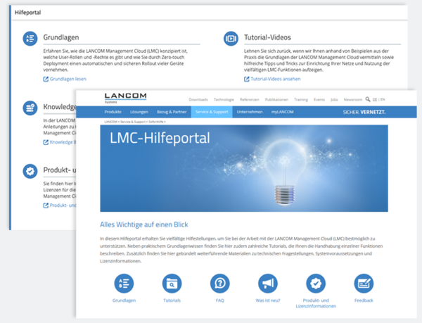 Im neuen Portal sind alle Hilfestellungen zur Bedienung der LMC gut auffindbar und zentral zugänglich: Informationen wie Grundlagen-Dokumentation, Tutorial-Videos, Knowledge Base-Artikel, FAQ, Lizenzinformationen sowie eine Liste der neuesten Features. Hierzu wurden Hilfen und Systeminformationen in zwei separate Bereiche aufgeteilt, was zusätzliche Übersichtlichkeit schafft. Damit wird die LMC noch benutzerfreundlicher.