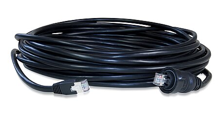 Das 15m bzw. 30m lange Ethernetkabel verfügt einseitig über einen wasserdichten RJ45-Stecker, der mit der Ethernetbuchse des Outdoor Access Points verbunden wird. Die andere Anschlussseite ist ein RJ45-Stecker ohne Überwurf und wird bei Outdoor-Installationen üblicherweise in einen Überspannungsschutzadapter, wie z.B. den AirLancer Extender SA-LAN geführt.