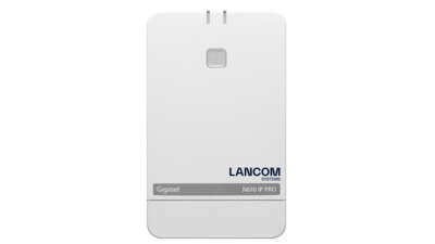 Die Basisstation LANCOM DECT N610 IP ist die ideale Lösung zur Einbindung von DECT-Mobilteilen in kleinen und mittleren Unternehmen. Angeschlossen an LANCOM SD-WAN VoIP Gateways, erfolgt eine automatische Einrichtung und Konfiguration. An der Basisstation können dann bis zu 8 DECT-Mobilteile einfach registriert und Rufnummern individuell zugewiesen werden. Dabei kombiniert die LANCOM DECT N610 IP kabellose Telefonie mit HD-Voice-Sprachqualität.