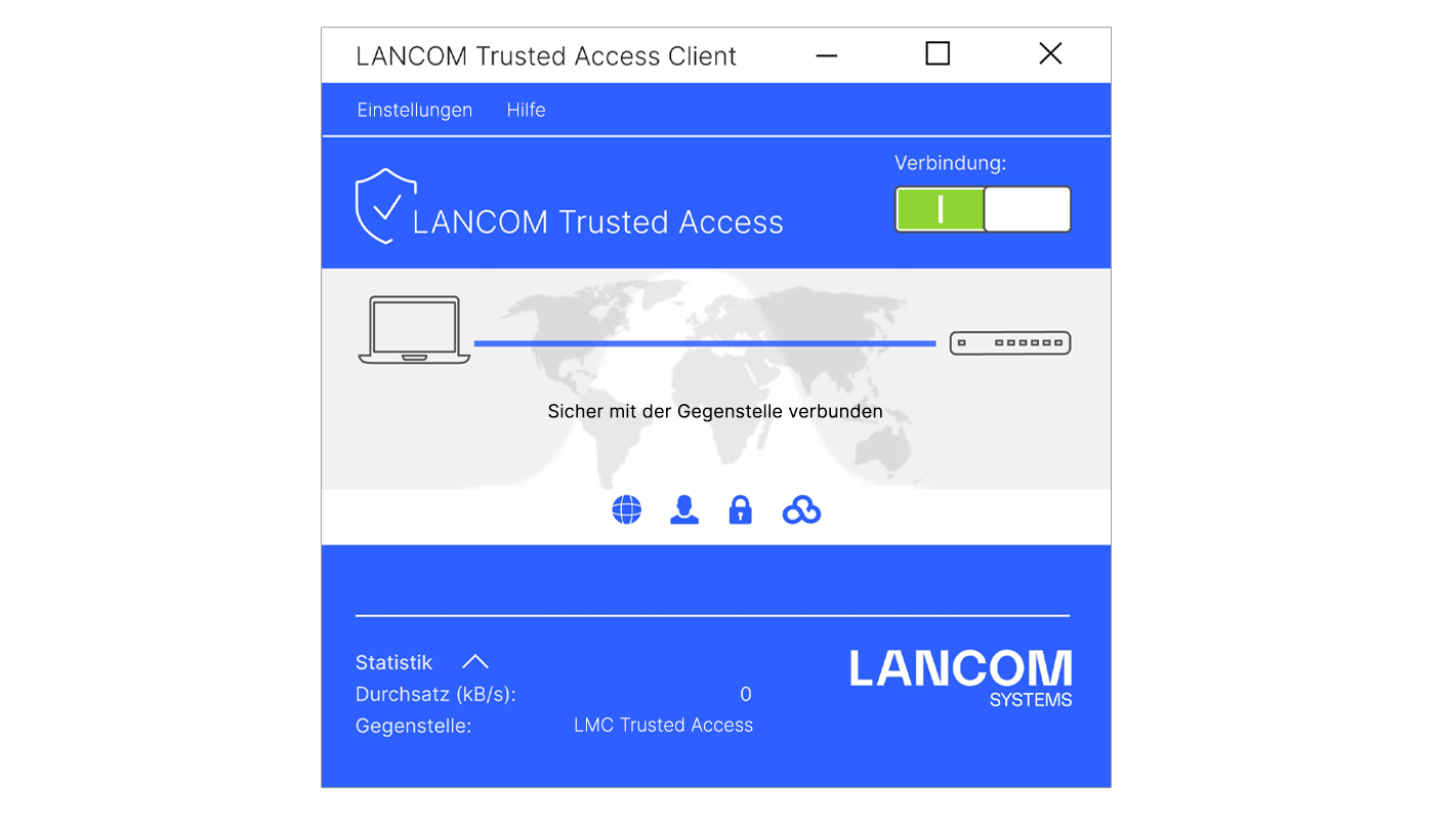 Der LANCOM Trusted Access Client ist die vertrauenswürdige Network Access Security-Lösung für Unternehmensnetzwerke. Er ermöglicht einen sicheren und skalierenden Zugriff auf Unternehmensanwendungen für Mitarbeitende im Büro, zu Hause oder unterwegs und schützt damit modernes hybrides Arbeiten von überall und jederzeit. Die LANCOM Trusted Access-Lösung passt sich an steigende Sicherheitsanforderungen in Ihrer Organisation an und ermöglicht sowohl Cloud-managed VPN-Client-Vernetzung für den Zugriff auf ganze Netze als auch den Umstieg auf eine Zero-Trust-Sicherheitsarchitektur für eine umfassende Netzwerksicherheit. Dabei erhalten Benutzer auf Basis granularer Zugriffsrechte ausschließlich Zugangsberechtigung auf Anwendungen, die ihnen zugewiesen wurden (Zero-Trust-Prinzip). Bestehende Systeme zur Verwaltung von Benutzern und Benutzergruppen (Active Directory) lassen sich vollständig in die LANCOM Management Cloud (LMC) integrieren. Für kleinere Netzwerke bietet die LMC alternativ eine interne Benutzerverwaltung. LANCOM Trusted Access 100% DSGVO-konform und skaliert für Kleinunternehmen genauso wie für sehr große Netzwerke mit mehreren tausend Benutzern.