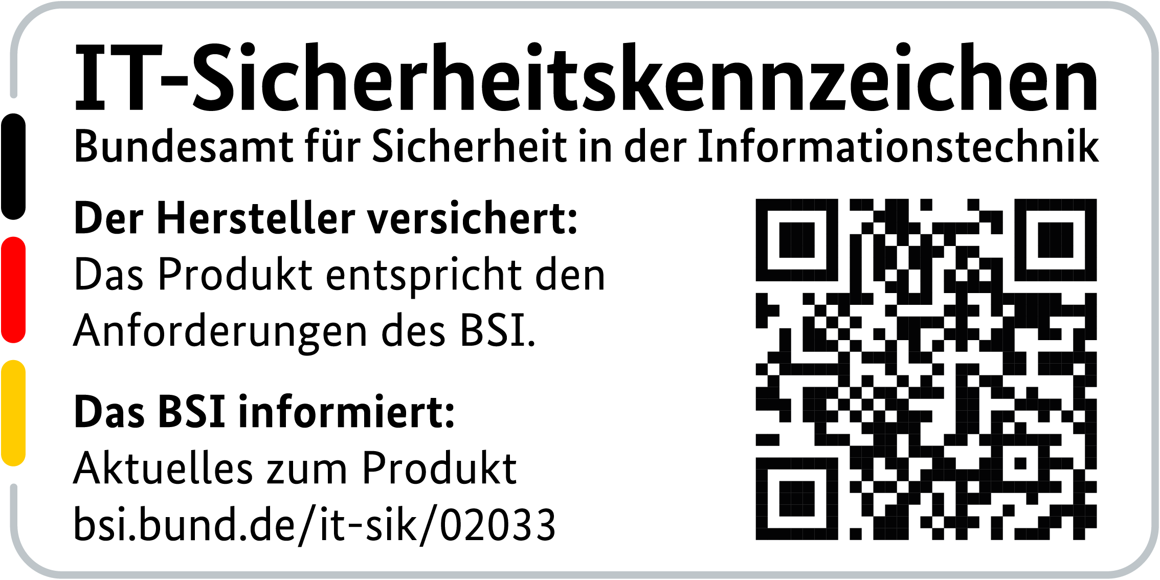 Der LANCOM 1650E erfüllt die strengen Sicherheitsanforderungen des Bundesamts für Sicherheit in der Informationstechnik (BSI) und ist Träger der IT-Sicherheitskennzeichens. Mit dem IT-Sicherheitskennzeichen erhalten Endanwenderinnen und Endanwender die Möglichkeit, sich über von Herstellern zugesicherte Sicherheitsfunktionalitäten von vernetzten, internetfähigen Produkten und Diensten zu informieren.
