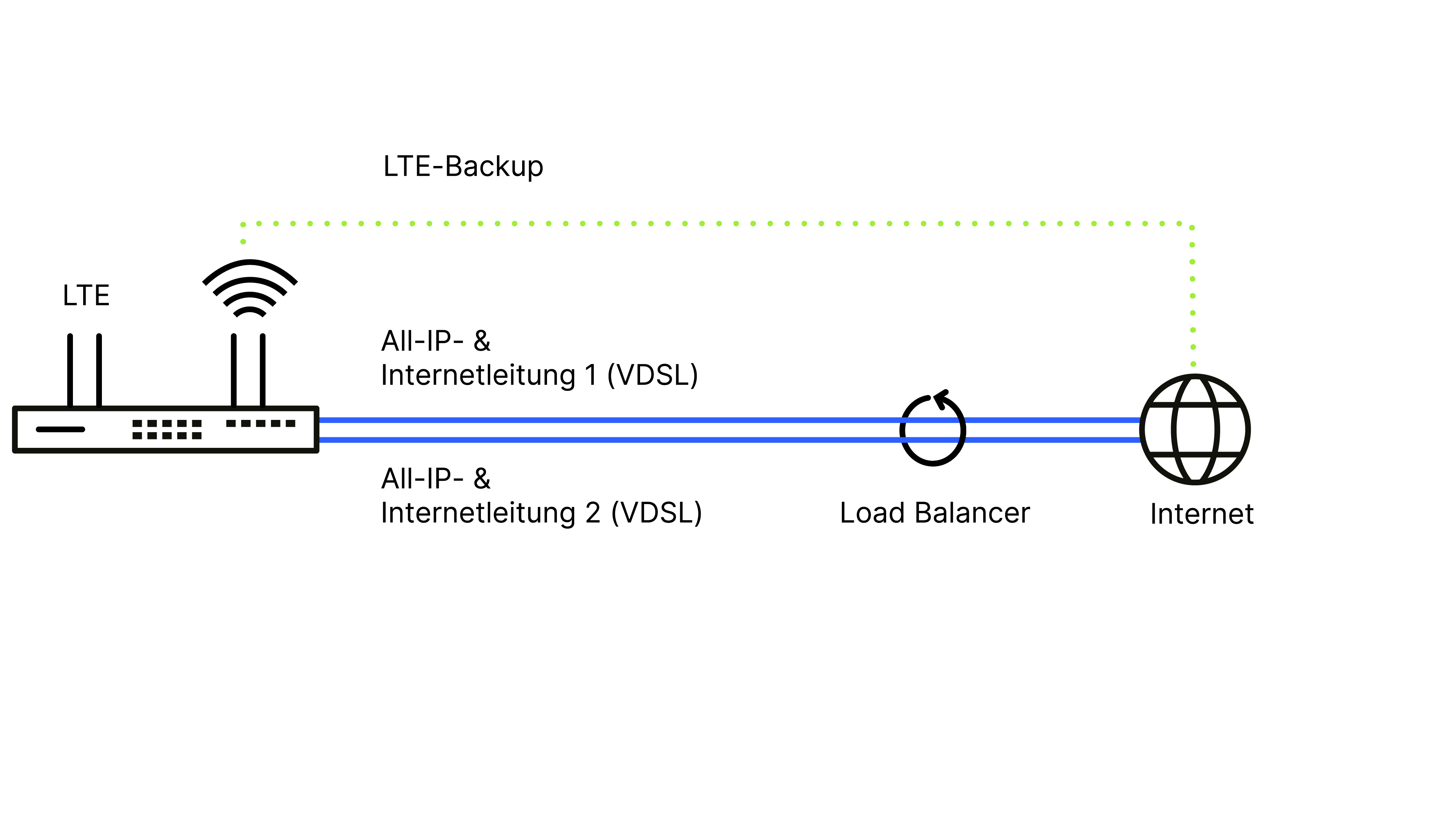 Anwendungsszenario mit Load Balancing und zwei All-IP-Leitungen