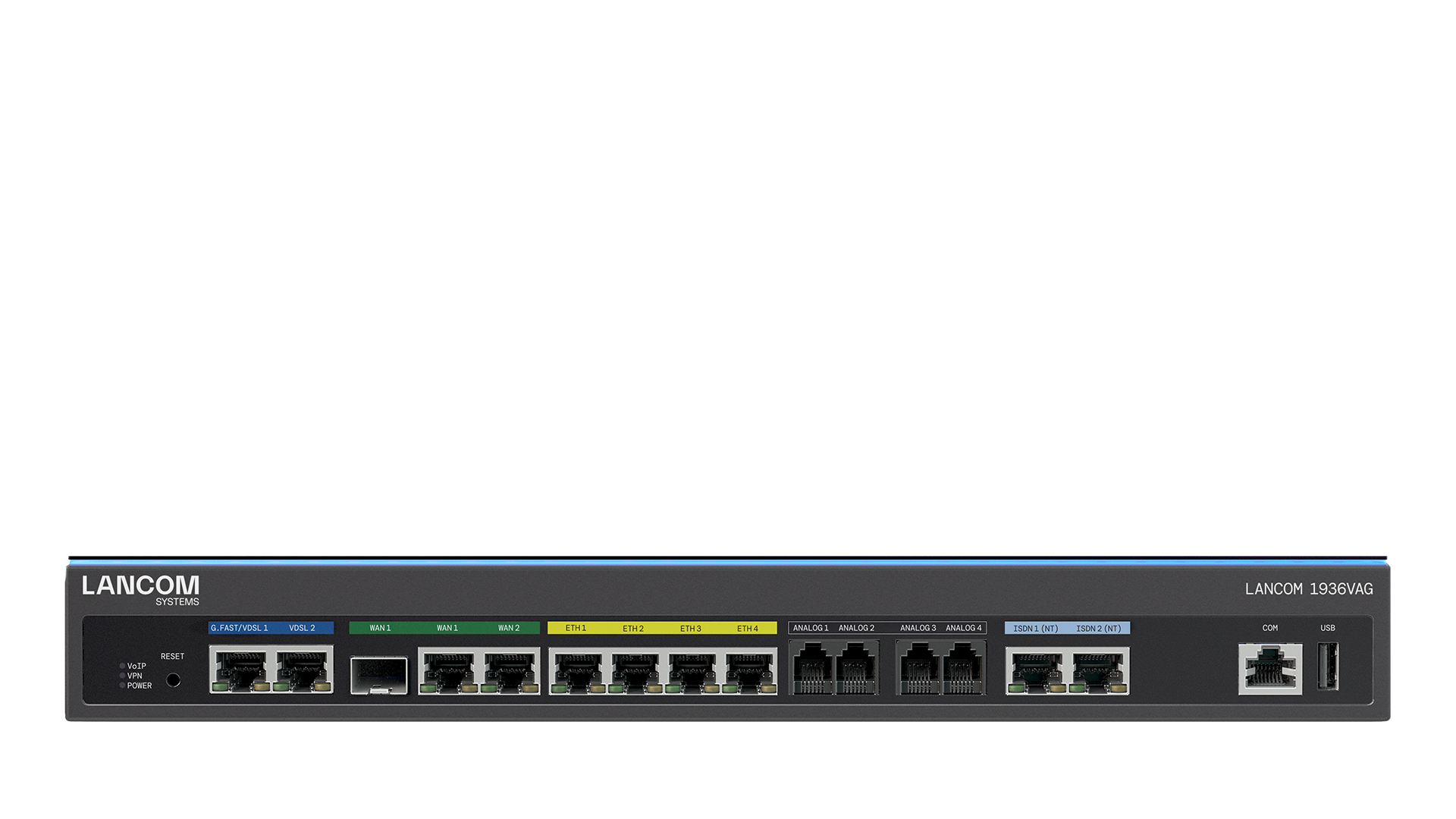 - Professionelle Telefoniefunktionen durch integrierten LANCOM VCM (Voice Call Manager) & SBC (Session Border Controller)