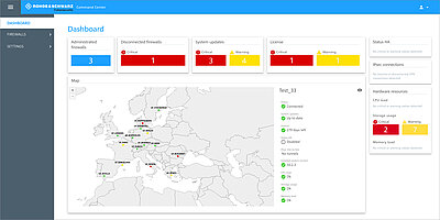 Das webbasierte LANCOM R&S®UF Command Center ist die ideale Lösung für Managed-Security-Service-Anbieter und Unternehmen, die eine Vielzahl LANCOM R&S®Unified Firewalls zentral verwalten, konfigurieren und überwachen müssen. Ein intuitives Dashboard erlaubt das Management und Monitoring, zentrale Backup-Verwaltung und Archivierung sowie Lizenzmonitoring aller verwalteten LANCOM R&S®Unified Firewalls.