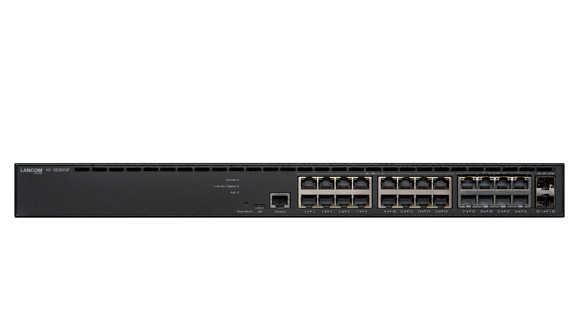Der LANCOM XS-3526YUP ist dank acht leistungsstarker 10G Multi-Gigabit Ethernet-Ports die ideale LAN-seitige Grundlage für die Integration des WLAN-Standards Wi-Fi 7 in moderne Infrastrukturen. Denn Wi-Fi 7 Access Points oder andere Netzwerkkomponenten mit hohen Übertragungsgeschwindigkeiten und Energiebedarf bedeuten erhöhte Performance-Ansprüche auf der Access-Ebene, die einfaches Gigabit Ethernet übersteigen. Um die volle Leistung und Reichweite von 10G zu gewährleisten, sind Kabel mit höherer Spezifikation wie min. CAT6a oder CAT7 erforderlich.