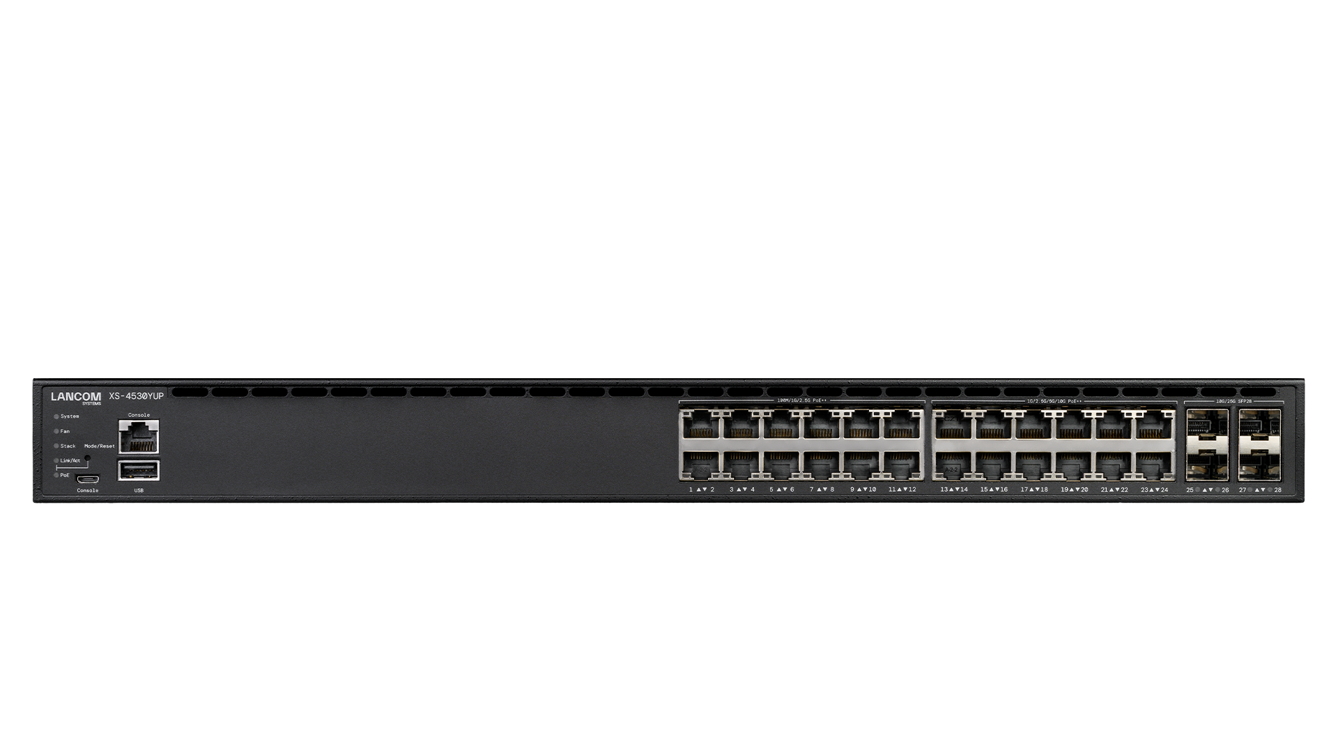 Der LANCOM XS-4530YUP stellt sicher, dass keine fremden Clients unbefugten Zugriff auf das Netzwerk erhalten. Ermöglicht wird dies durch die sichere Zugriffskontrolle auf allen Ports nach IEEE 802.1X…