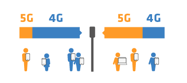 Umgekehrt verhält es sich bei Netzen, die einer hohen Nutzerdichte gerecht werden: Durch die Nutzung höherer Frequenzen stehen größere Kanalbandbreiten zur Verfügung, die eine schnellere Übertragung von großen Datenmengen ermöglichen und dadurch die Leistung verbessern. Neben großen Mobilfunkantennen werden zum Ausgleich der geringeren Funkwellenreichweite auch Kleinzellen (Small Cells) als Basisstationen verwendet. Die höheren Frequenzen, die ausschließlich für 5G vorgesehen sind, eignen sich daher hauptsächlich für den Betrieb in Städten und anderen Ballungsgebieten.