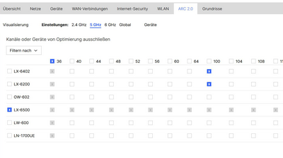 Ideal, wenn Teile des WLANs bereits manuell ausgeleuchtet und optimiert wurden und nicht mehr verändert werden sollen. - Ausschluss einzelner Kanäle von der Optimierung: