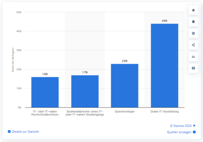 Die IT-Branche reagiert auf den Fachkräftemangel mit flexiblen Einstellungskriterien: Rund ein Viertel der IT-Fachkräfte, die in den letzten zwölf Monaten eingestellt wurden, sind Quereinsteiger. Nur 16 Prozent der neuen Mitarbeiter verfügen über einen IT- oder IT-nahen Hochschulabschluss, während 44 Prozent eine duale IT-Berufsausbildung absolviert haben. Für Quereinsteiger sind jedoch maßgeschneiderte Weiterbildungsangebote essenziell, um Grundlagenwissen zu vertiefen und spezifisches Know-how aufzubauen.