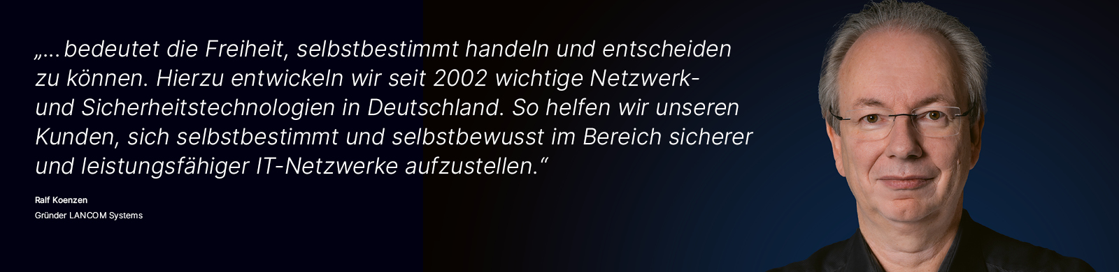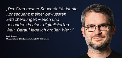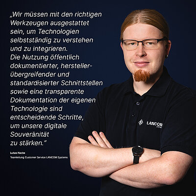 Wir sind der Auffassung, dass man sich für Anliegen nur dann glaubhaft einsetzen kann, wenn man mit ganzem Herzen dabei ist. Darum ist Digitale Souveränität für uns nicht nur ein Buzzword, sondern eine ernstzunehmende Verpflichtung, der sich jeder einzelne Mitarbeitende verschrieben hat. Egal ob in der Produktentwicklung, Softwareprogrammierung, dem Qualitätsmanagement, dem Vertrieb oder in der Marketingabteilung – wir sind stolz auf das, wofür wir, die LANCOM Systems, stehen: Technologische Qualitätsprodukte engineered in Germany, 100% Backdoor-frei, 100% DSGVO-konform und mit klarem Augenmerk auf die digitale Selbstbefähigung unserer Kunden entwickelt. Dafür lohnt es sich, Gesicht zu zeigen. Und das tun wir.
