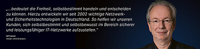 Unseren Kunden bieten wir eine vertrauenswürdige und hochsichere Alternative zu US-amerikanischen und asiatischen Netzwerklösungen. Damit stärken wir gezielt die Digitale Souveränität von Unternehmen, Behörden und Organisationen in ganz Europa und weltweit.